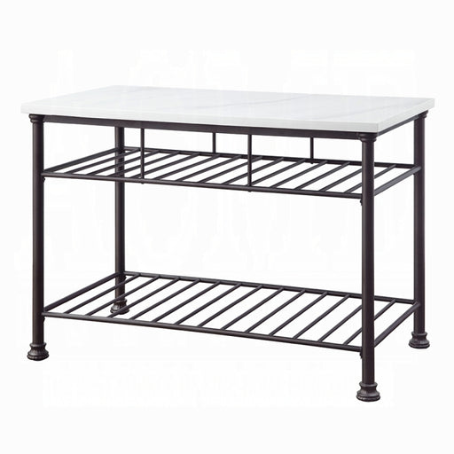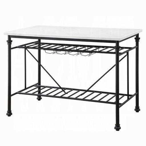 ACME WestACME Lanzo Kitchen Island (Counter), Marble & Gunmetal, 50" x 28" x 36"H, 119Lbs. The Lanzo kitchen cart is a harmonious blend of form and func...