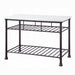 Minimalistic design paired with clean, simple color. The Freyja Kitchen Island gives off a light and airy feel to a compact cooking space. Clean-lined metal frame is topped with a artificial stone top, creating a sleek, modern silhouette that gives your kitchen an open feel. Spacious rectangular table top with two tier shelf provides more countertop space and storage. Use this stylish yet functional addition to complete your kitchen decor.