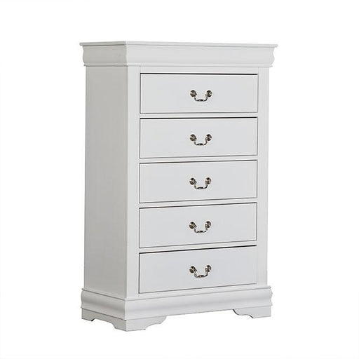 This compact five-drawer chest is perfect for those with smaller living spaces. Available in white, red, or espresso finish.