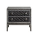 Modern styling is achieved by pairing classic design elements with eye-catching bold lines culminating in the chic look of the West End Collection. Painted silver accent subtly frames the diamond-patterned gray faux leather fronts of the nightstand, each providing complementing contrast to the gray wire-brushed finish of the collection’s birch veneer. Square nickel finished hardware fronts each drawer, furthering the modern look of the West End Collection. 29 x 17 x 27H