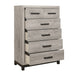 The sleek design of the Zephyr Collection pairs clean lines with modern convenience to create a style that will be the perfect palette for your design aspirations. Visually tying the chest together are the painted metal-finish banding of the base rail and the metal bar hardware that fronts each drawer, culminating in an accenting contrast to the dark gray faux wood finish of the melamine veneer.